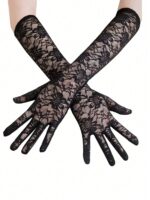 Add a touch of timeless elegance to your look with these Black Lace Flower Design Gloves. Crafted with delicate floral lace, they bring a romantic and gothic charm to any outfit — perfect for weddings, bachelorette parties, Halloween, or Valentine’s Day.
