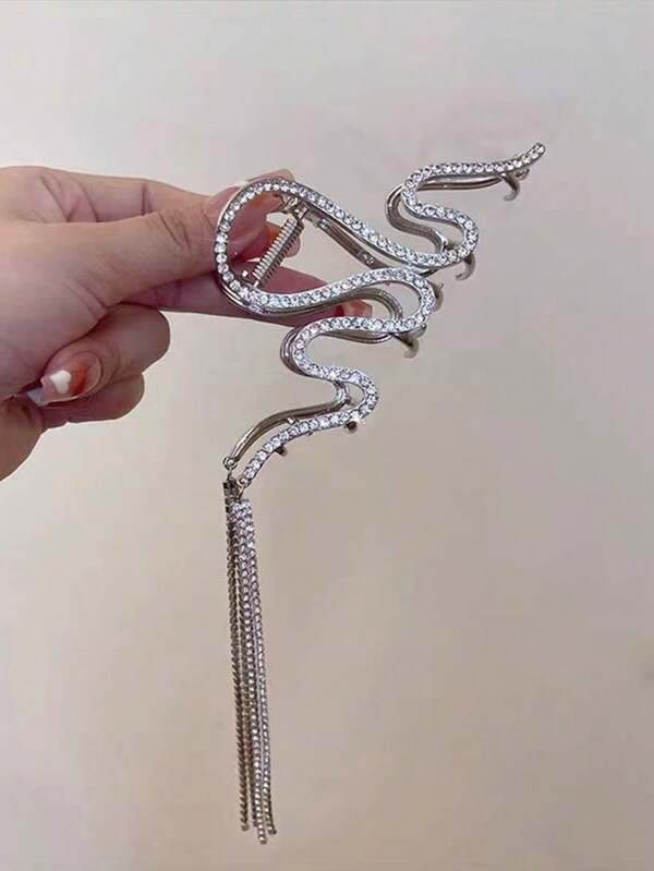 Add instant glamour to your look with this Fashion Rhinestone Wavy Hair Claw Clip. Designed with shimmering rhinestones and graceful wavy fringes, it combines luxury and practicality, perfect for daily wear, parties, or vacations.