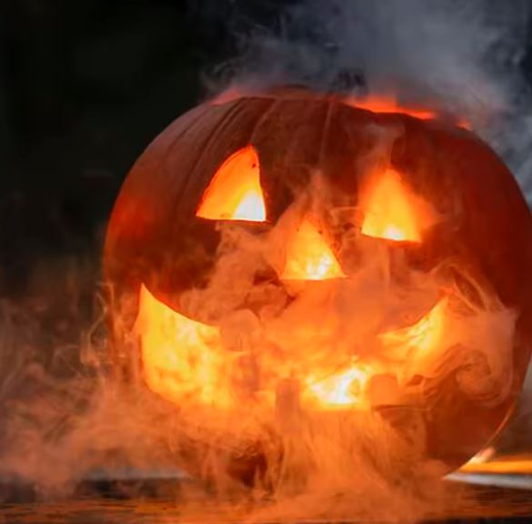 Halloween Smoke Fog Machine,Mini LED Pumpkin Light,Fogger Water Fountain Pond Fog Machine,Halloween Outdoor Decoration