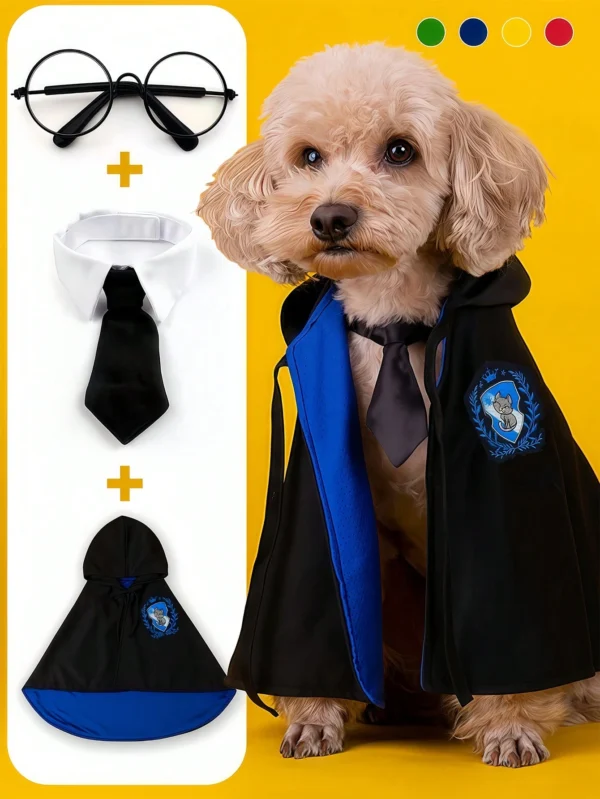 Turn your furry friend into a little wizard this Halloween with this adorable Pet Cloak Costume Set! Complete with a robe, shirt collar, tie, and glasses, this outfit perfectly captures the magical school theme for fun cosplay photos and parties.