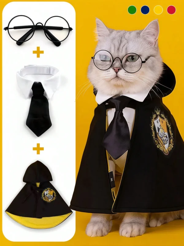 Pet Wizard Cloak Costume Set – Magical Halloween Outfit for Cats & Small Dogs